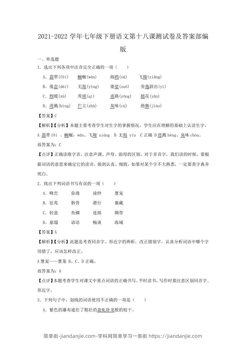 ![图片[2]-2021-2022学年七年级下册语文第十八课测试卷及答案部编版(Word版)-简单街-jiandanjie.com](https://jiandanjie.com/wp-content/uploads/2025/01/说明书指南小程序码.jpg)
