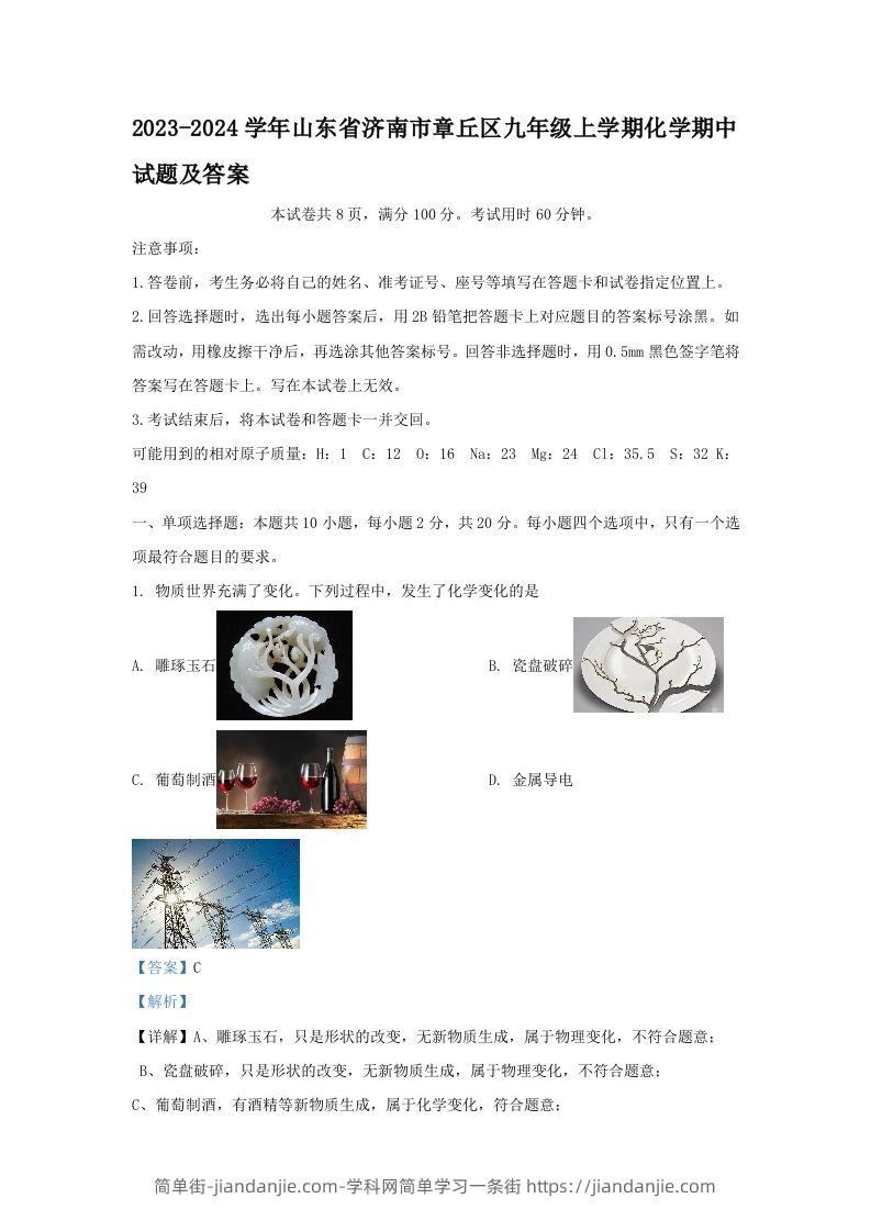 ![图片[1]-2023-2024学年山东省济南市章丘区九年级上学期化学期中试题及答案(Word版)-简单街-jiandanjie.com](https://jiandanjie.com/wp-content/uploads/2024/12/b32b10586ae14086b518e28202cc1b59-1.jpg)