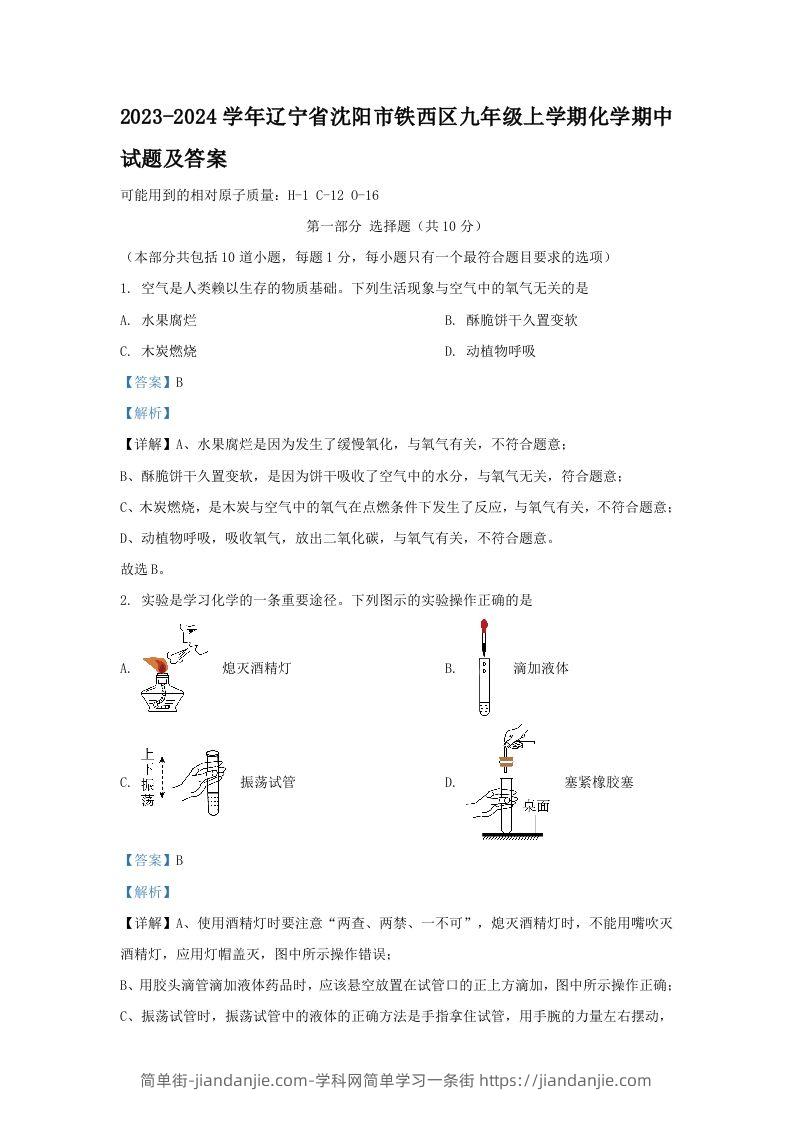 ![图片[2]-2023-2024学年辽宁省沈阳市铁西区九年级上学期化学期中试题及答案(Word版)-简单街-jiandanjie.com](https://jiandanjie.com/wp-content/uploads/2025/01/说明书指南小程序码.jpg)