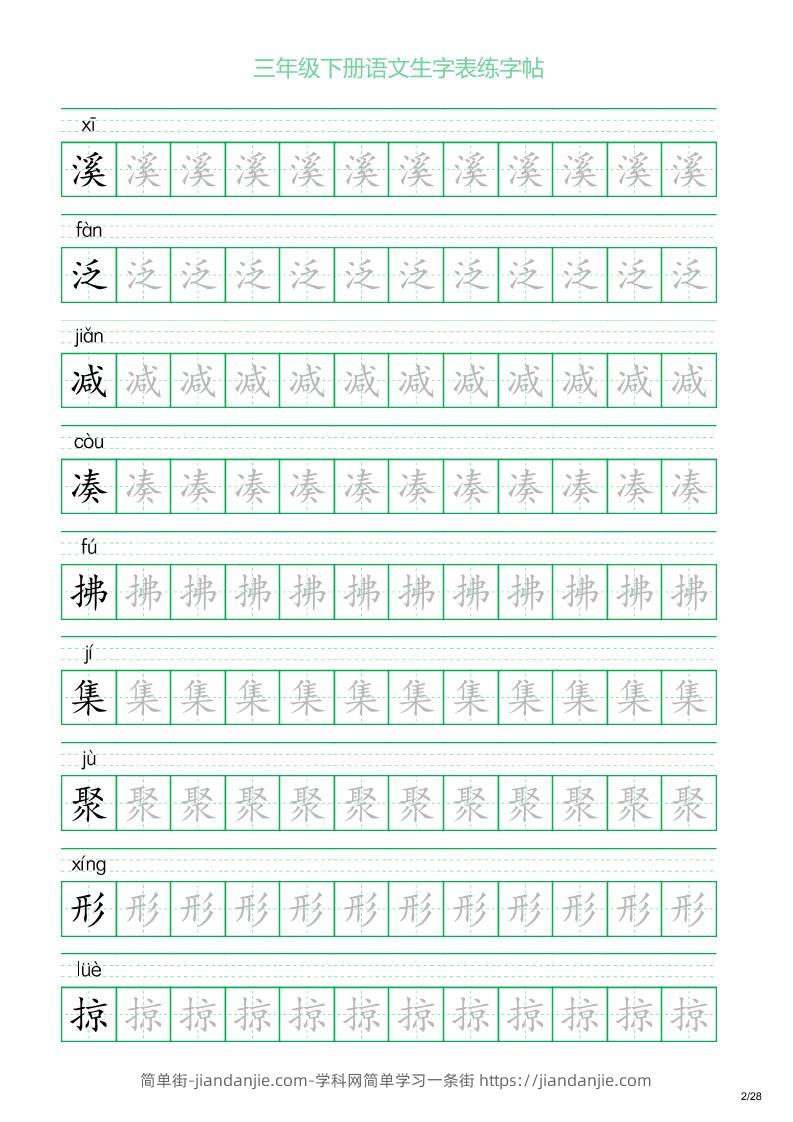 三年级下册语文生字表练字帖1(28页) 简单街 1年前发布 关注 私信 020 三年级下册语文生字表练字帖1(28页)此内容为付费资源,请付费后查看¥1.5黄金会员免费钻石会员免费立即购买您当前未登录!建议登陆后购买,可保存购买订单格式pdf页数28 页大小1.73 MB付费资源 ——预览已结束,还剩26页未读——开通会员后可免费下载高清完整文档 © 版权声明文章版权归作者所有,未经允许请勿转载。THE END小学语文喜欢就支持一下吧点赞0 分享收藏0