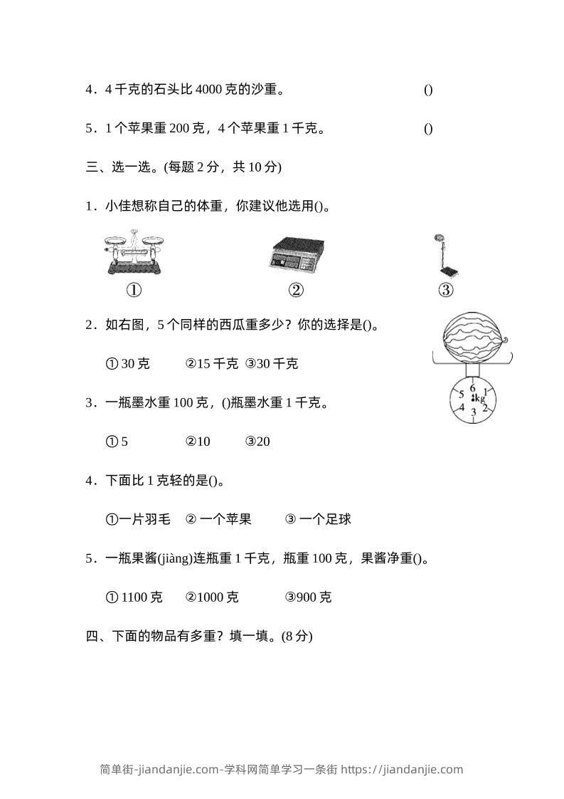 、下面的物品有多重? 填一填。(8分)