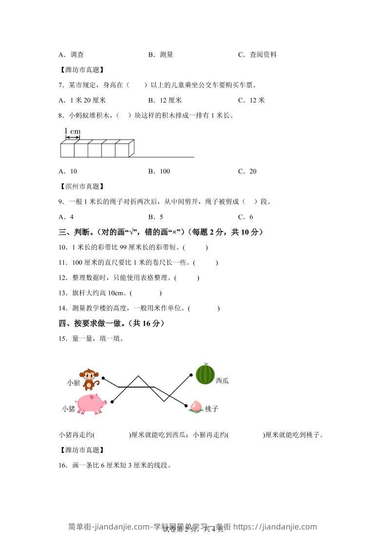 15. 量一量,填一填。