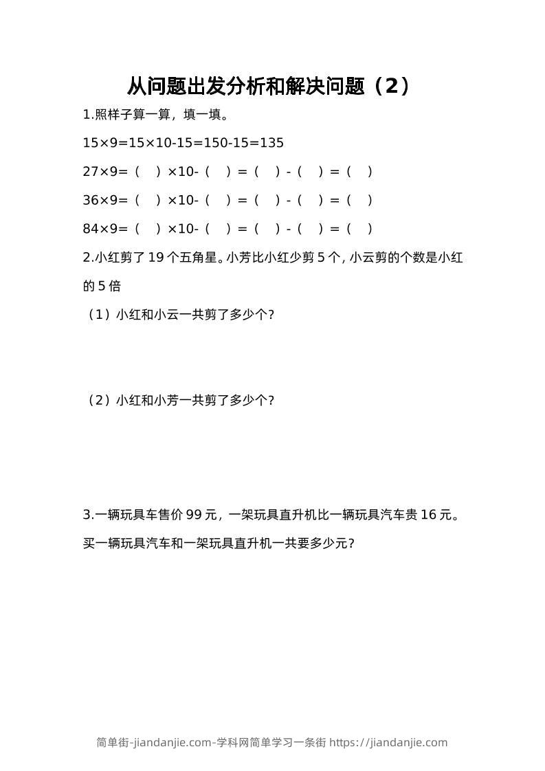 2.小红剪了 19 个五角星。 小芳比小红少剪 5 个, 小云剪的个数是小红