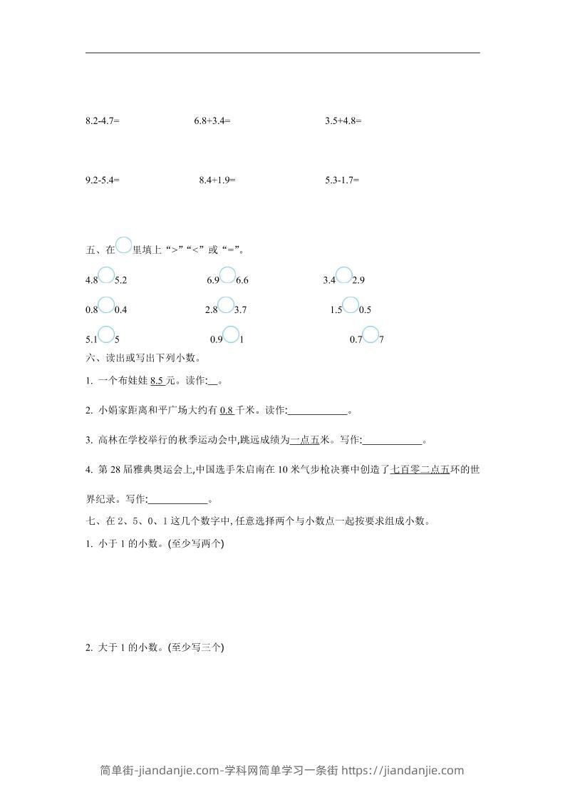 1. 小于 1 的小数。(至少写两个)