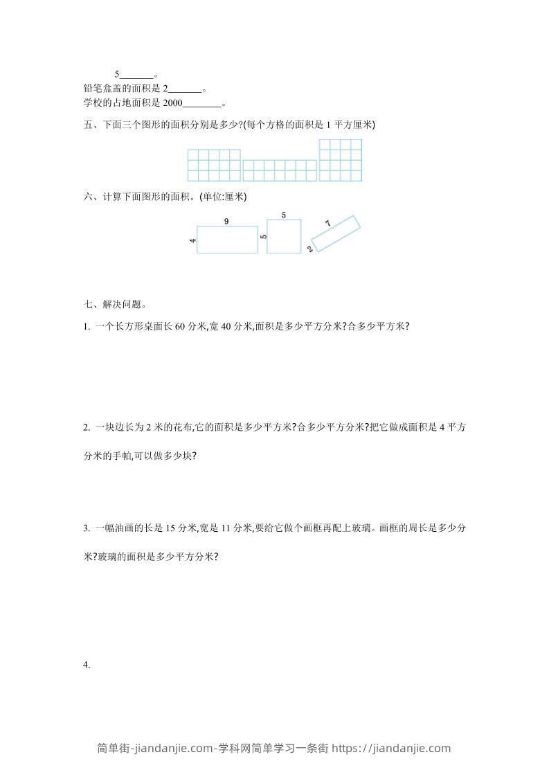 1. 一个长方形捍面长 60 分米,宽 40 分米,面积是多少平方分米?合多少平方米?