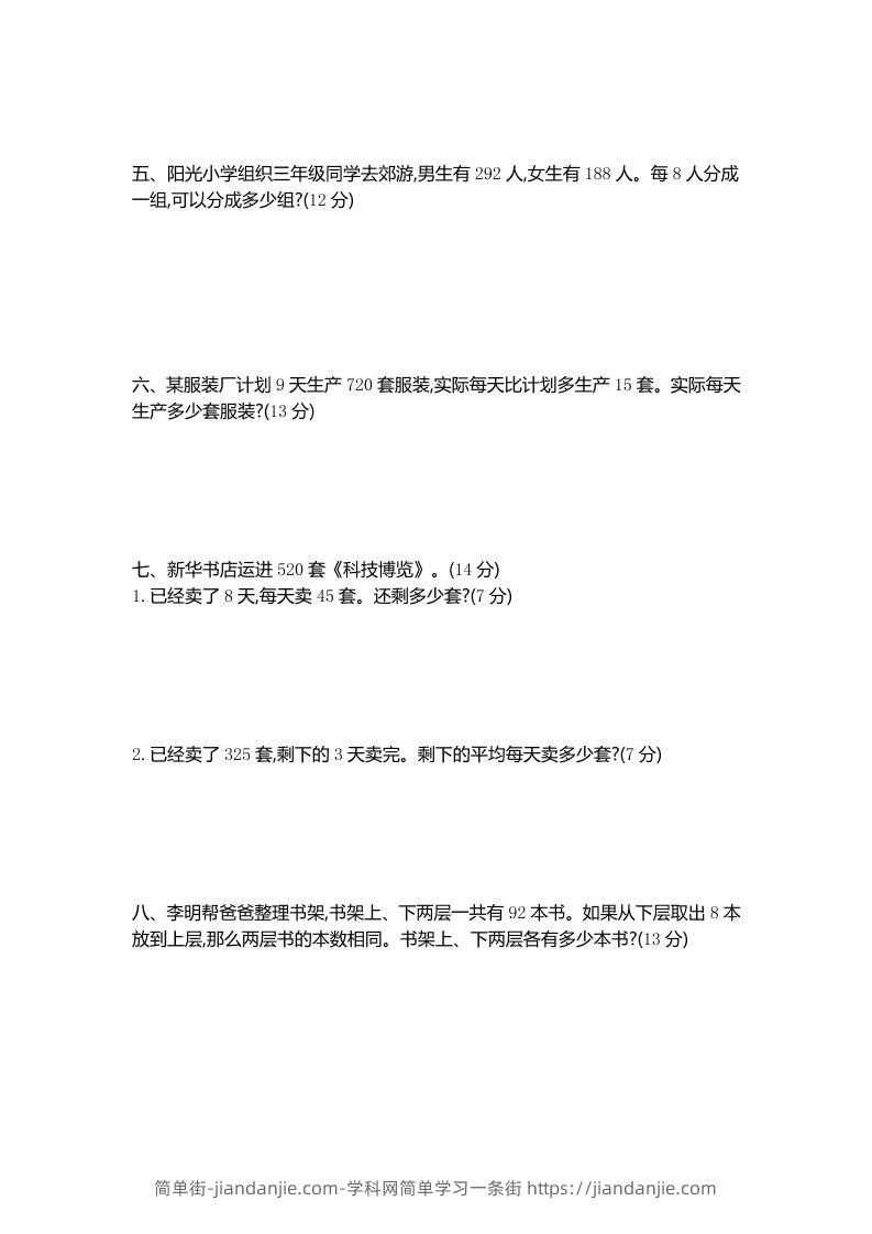 1. 已经卖了 8 天,每天卖 45 套。还剩多少套?(7 分)