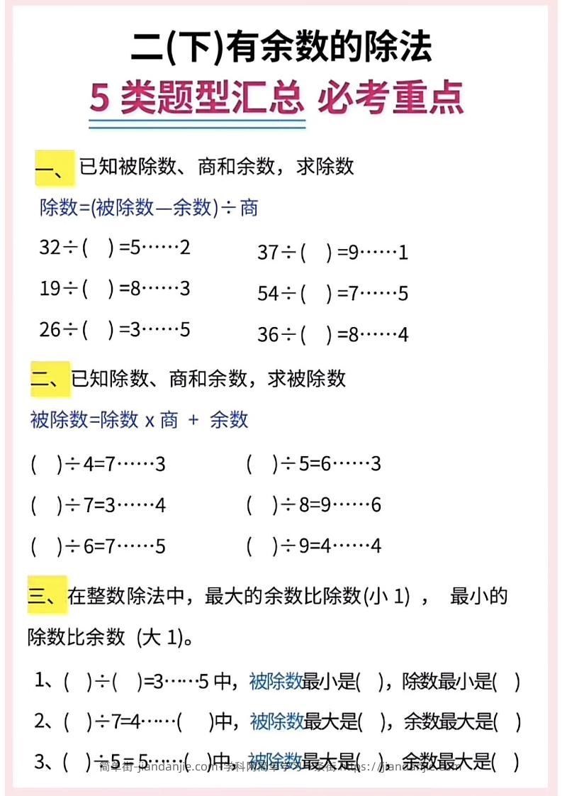 二下数学《有余数的除法》五大常考题型汇总(9页) 简单街 1年前发布 关注 私信 010 二下数学《有余数的除法》五大常考题型汇总(9页)此内容为付费资源,请付费后查看¥2.7黄金会员免费钻石会员免费立即购买您当前未登录!建议登陆后购买,可保存购买订单格式pdf页数9 页大小2.48 MB付费资源 ——预览已结束,还剩7页未读——开通会员后可免费下载高清完整文档 © 版权声明文章版权归作者所有,未经允许请勿转载。THE END小学数学喜欢就支持一下吧点赞0 分享收藏0