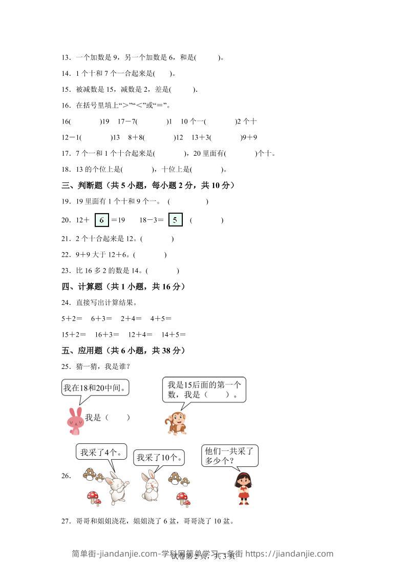 北师大版数学一年级下册第一单元《20以内数与加法》重点综合测试卷 简单街 1年前发布 关注 私信 040 北师大版数学一年级下册第一单元《20以内数与加法》重点综合测试卷此内容为付费资源,请付费后查看¥0.9黄金会员免费钻石会员免费立即购买您当前未登录!建议登陆后购买,可保存购买订单格式pdf页数10 页大小282.89 KB付费资源 ——预览已结束,还剩8页未读——开通会员后可免费下载高清完整文档 © 版权声明文章版权归作者所有,未经允许请勿转载。THE END小学数学喜欢就支持一下吧点赞0 分享收藏0