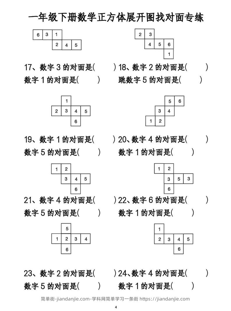 一年级下册数学正方体找对面 简单街 1年前发布 关注 私信 020 一年级下册数学正方体找对面此内容为付费资源,请付费后查看¥1.5黄金会员免费钻石会员免费立即购买您当前未登录!建议登陆后购买,可保存购买订单格式pdf页数4 页大小1.51 MB付费资源 ——预览已结束,还剩2页未读——开通会员后可免费下载高清完整文档 © 版权声明文章版权归作者所有,未经允许请勿转载。THE END小学数学喜欢就支持一下吧点赞0 分享收藏0