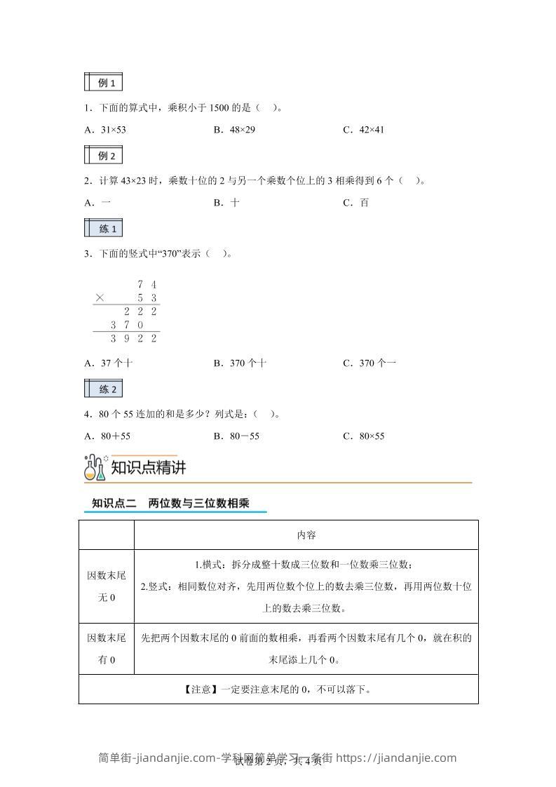 2.竖式: 相同数位对齐,用第二个因数的各位上的数去乘第一个因数,