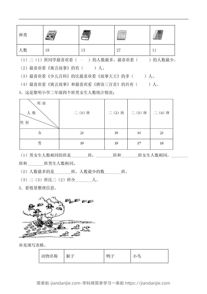 2. 下面是二〈2) 班学生们最喜欢的动画片情况。