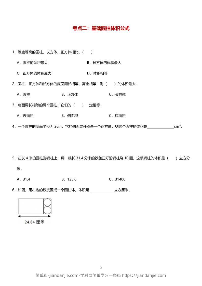 六年级下数学圆柱体积必考9类题型 简单街 9月前发布 关注 私信 030 六年级下数学圆柱体积必考9类题型此内容为付费资源,请付费后查看¥1.2黄金会员免费钻石会员免费立即购买您当前未登录!建议登陆后购买,可保存购买订单格式pdf页数14 页大小7.71 MB付费资源 ——预览已结束,还剩12页未读——开通会员后可免费下载高清完整文档 © 版权声明文章版权归作者所有,未经允许请勿转载。THE END小学数学喜欢就支持一下吧点赞0 分享收藏0