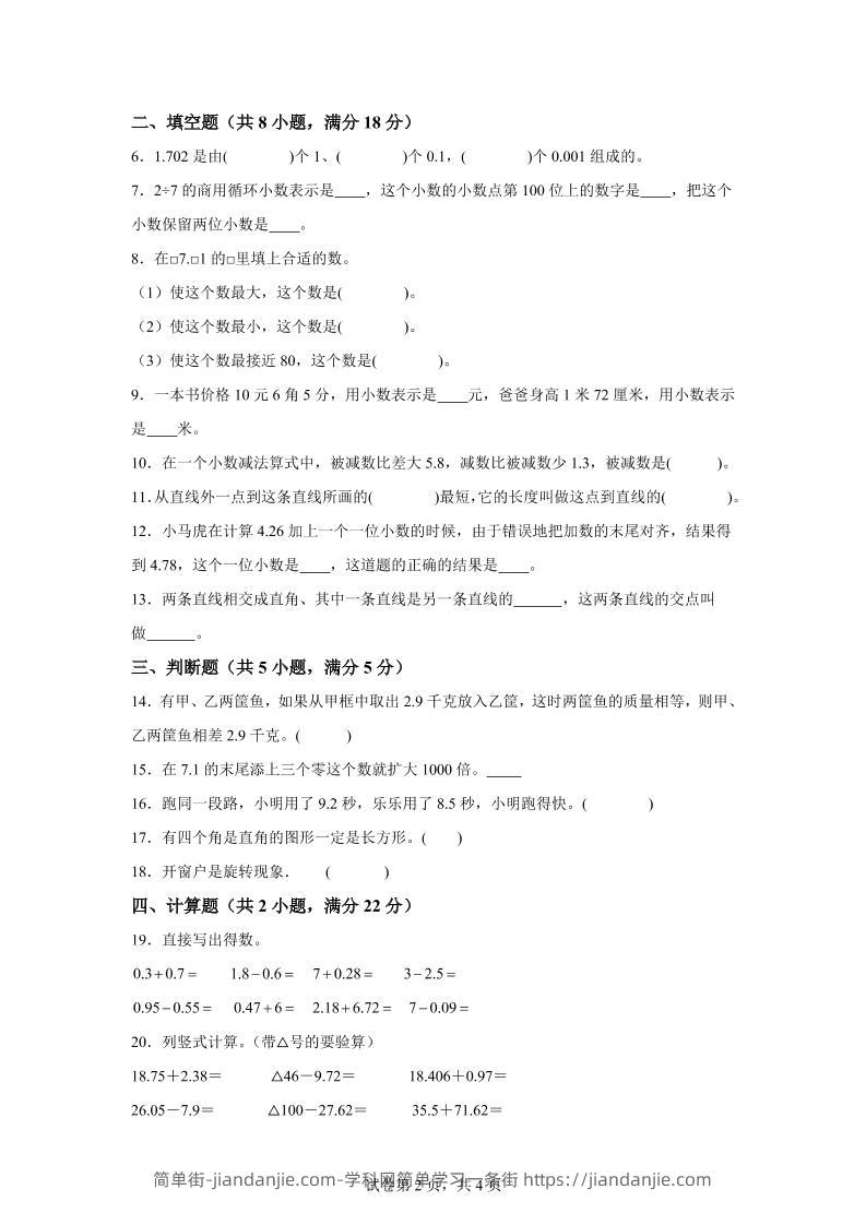 2024-2025学年北京版四年级下册期中素养测评数学试卷(基础卷一) 简单街 1年前发布 关注 私信 030 2024-2025学年北京版四年级下册期中素养测评数学试卷(基础卷一)此内容为付费资源,请付费后查看¥1.5黄金会员免费钻石会员免费立即购买您当前未登录!建议登陆后购买,可保存购买订单格式pdf页数12 页大小274.29 KB付费资源 ——预览已结束,还剩10页未读——开通会员后可免费下载高清完整文档 © 版权声明文章版权归作者所有,未经允许请勿转载。THE END小学数学喜欢就支持一下吧点赞0 分享收藏0