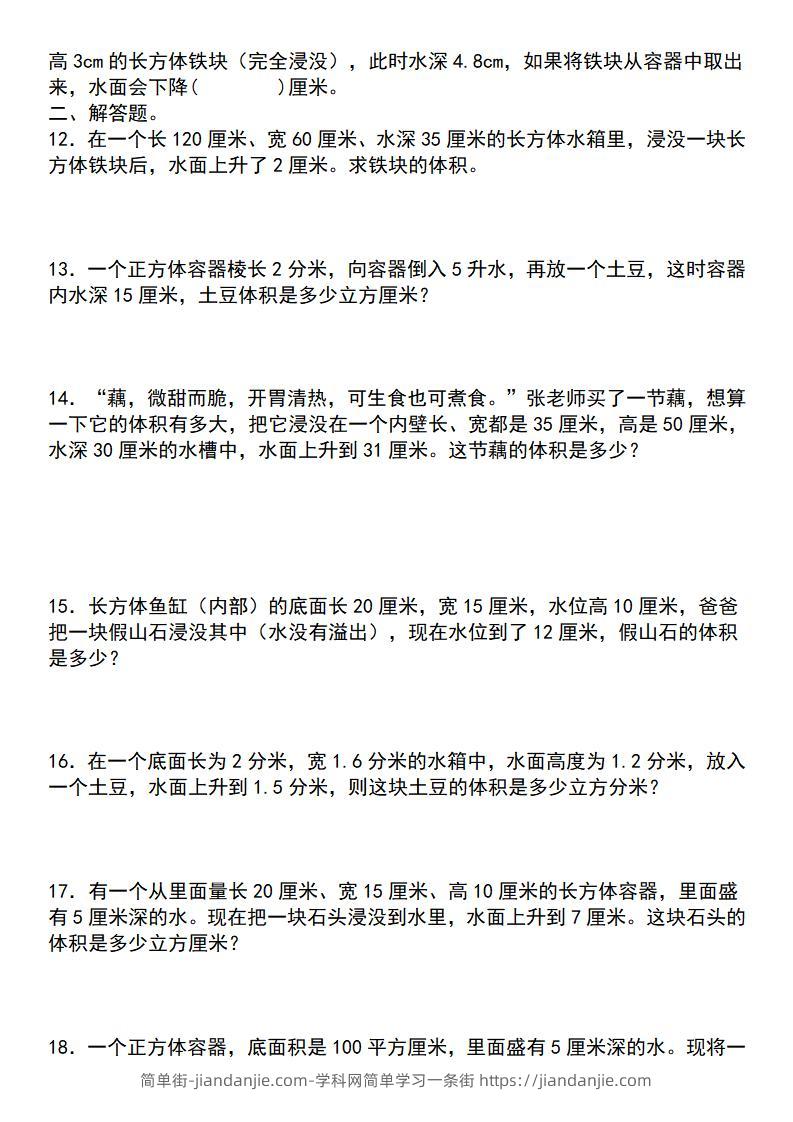 【通用版】五年级下册数学典型例题与相关拓展(3-2排水法求不规则物体的体积“一般问题”) 简单街 1年前发布 关注 私信 020 【通用版】五年级下册数学典型例题与相关拓展(3-2排水法求不规则物体的体积“一般问题”)此内容为付费资源,请付费后查看¥0.9黄金会员免费钻石会员免费立即购买您当前未登录!建议登陆后购买,可保存购买订单格式pdf页数11 页大小764.36 KB付费资源 ——预览已结束,还剩9页未读——开通会员后可免费下载高清完整文档 © 版权声明文章版权归作者所有,未经允许请勿转载。THE END小学数学喜欢就支持一下吧点赞0 分享收藏0