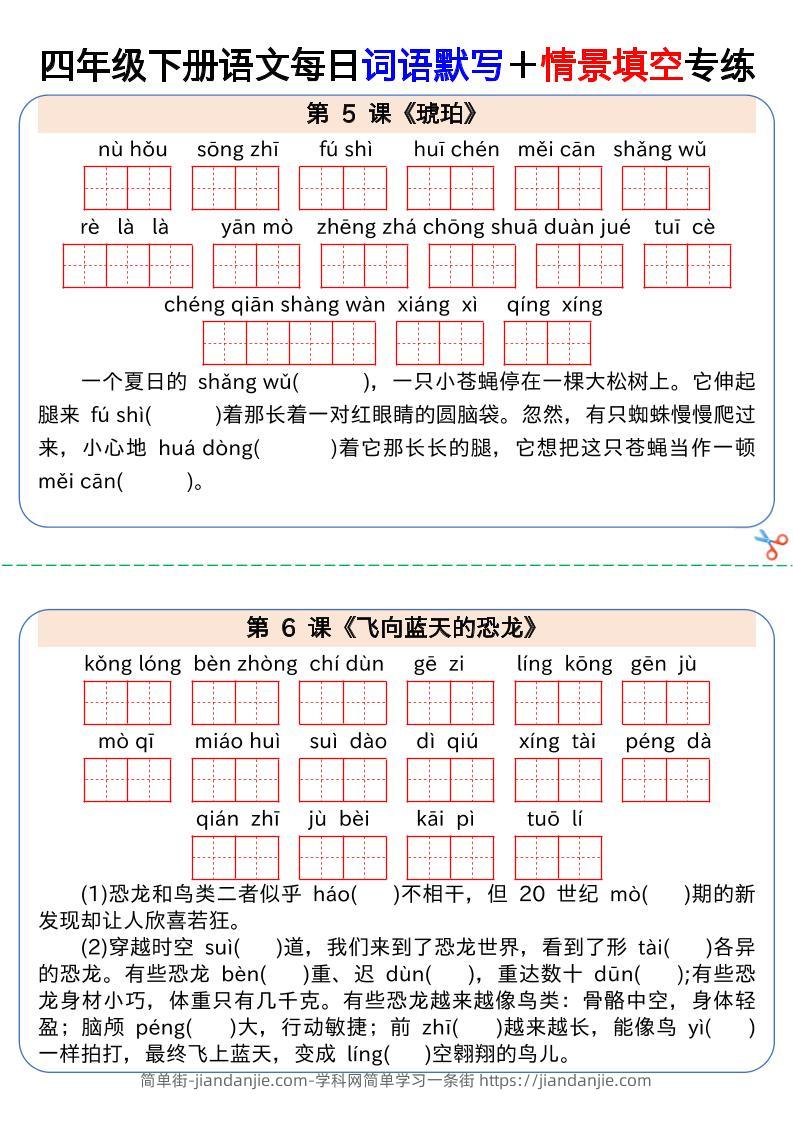【每日词语默写+情景填空专练】四下语文 简单街 11月前发布 关注 私信 010 【每日词语默写+情景填空专练】四下语文此内容为付费资源,请付费后查看¥1.2黄金会员免费钻石会员免费立即购买您当前未登录!建议登陆后购买,可保存购买订单格式pdf页数9 页大小3.32 MB付费资源 ——预览已结束,还剩7页未读——开通会员后可免费下载高清完整文档 © 版权声明文章版权归作者所有,未经允许请勿转载。THE END小学语文喜欢就支持一下吧点赞0 分享收藏0
