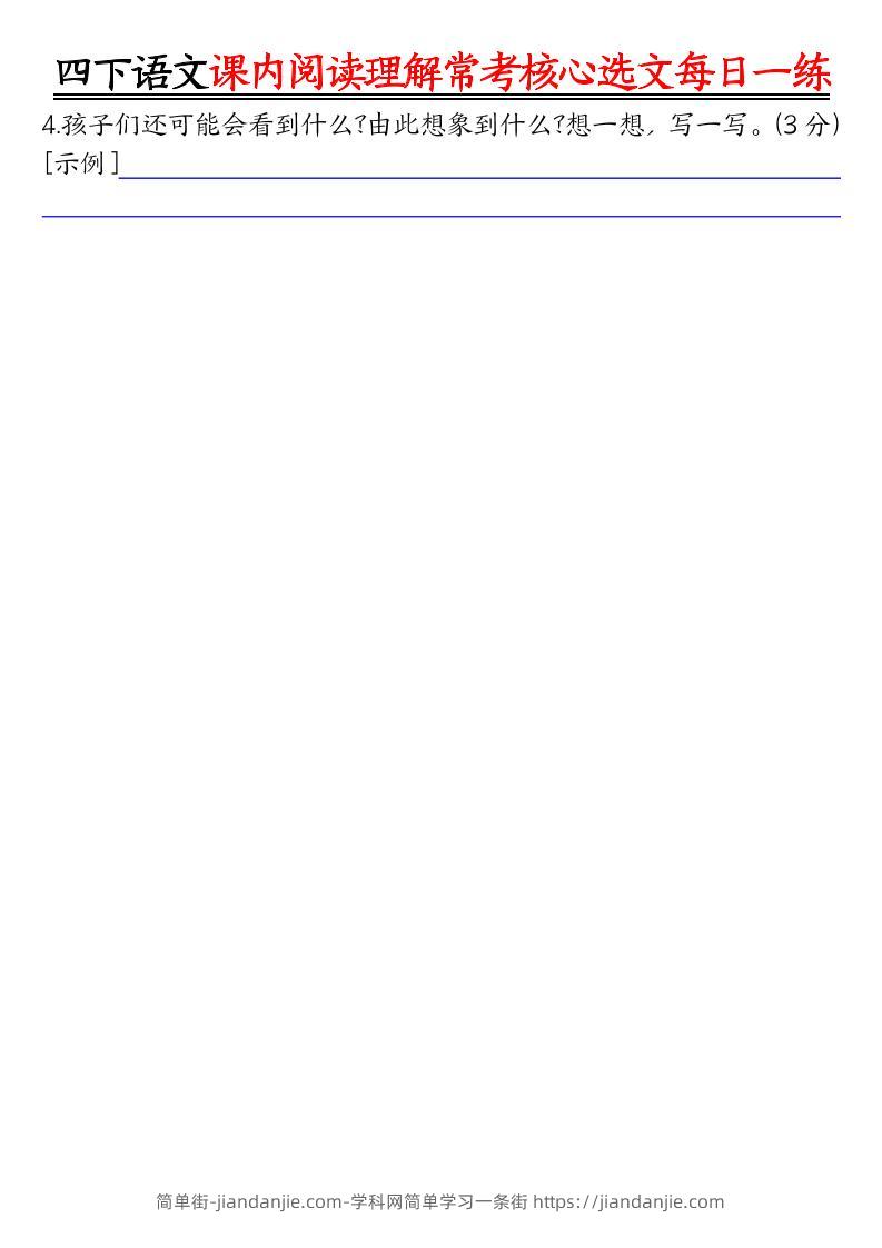 【课内阅读理解-常考核心选文每日一练(含答案26页)】四下语文 简单街 11月前发布 关注 私信 010 【课内阅读理解-常考核心选文每日一练(含答案26页)】四下语文此内容为付费资源,请付费后查看¥1.2黄金会员免费钻石会员免费立即购买您当前未登录!建议登陆后购买,可保存购买订单格式pdf页数26 页大小958.37 KB付费资源 ——预览已结束,还剩24页未读——开通会员后可免费下载高清完整文档 © 版权声明文章版权归作者所有,未经允许请勿转载。THE END小学语文喜欢就支持一下吧点赞0 分享收藏0