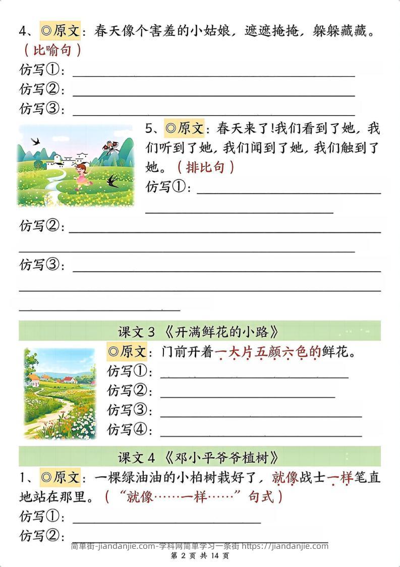 新二下语文1-8单元重点课文句子仿写(空白) 简单街 11月前发布 关注 私信 020 新二下语文1-8单元重点课文句子仿写(空白)此内容为付费资源,请付费后查看¥2.7黄金会员免费钻石会员免费立即购买您当前未登录!建议登陆后购买,可保存购买订单格式pdf页数14 页大小4.82 MB付费资源 ——预览已结束,还剩12页未读——开通会员后可免费下载高清完整文档 © 版权声明文章版权归作者所有,未经允许请勿转载。THE END小学语文喜欢就支持一下吧点赞0 分享收藏0