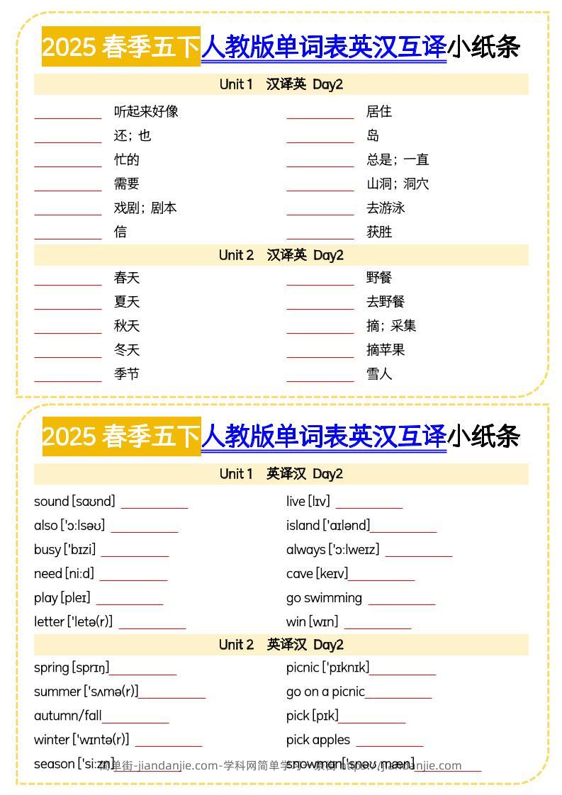 五下英语人教版单词表英汉互译小纸条 简单街 7月前发布 关注 私信 010 五下英语人教版单词表英汉互译小纸条此内容为付费资源,请付费后查看¥1.2黄金会员免费钻石会员免费立即购买您当前未登录!建议登陆后购买,可保存购买订单格式pdf页数8 页大小235.23 KB付费资源 ——预览已结束,还剩6页未读——开通会员后可免费下载高清完整文档 © 版权声明文章版权归作者所有,未经允许请勿转载。THE END小学英语喜欢就支持一下吧点赞0 分享收藏0