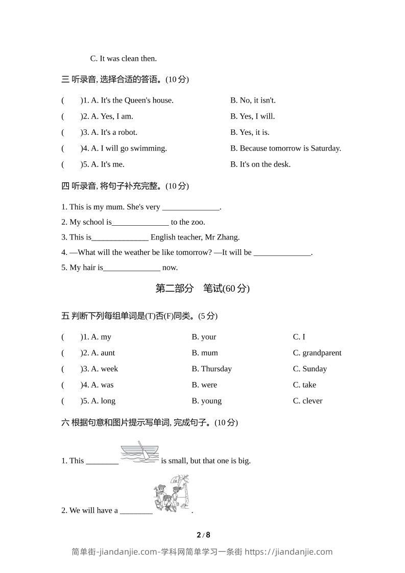 外研版2024-2025学年英语四年级下册第二学期期中考试(A)卷 简单街 7月前发布 关注 私信 020 外研版2024-2025学年英语四年级下册第二学期期中考试(A)卷此内容为付费资源,请付费后查看¥1.5黄金会员免费钻石会员免费立即购买您当前未登录!建议登陆后购买,可保存购买订单格式doc页数8 页大小3.06 MB付费资源 ——预览已结束,还剩6页未读——开通会员后可免费下载高清完整文档 © 版权声明文章版权归作者所有,未经允许请勿转载。THE END小学英语喜欢就支持一下吧点赞0 分享收藏0