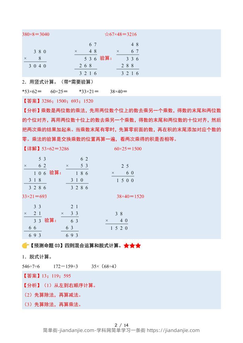 所 【预测命题 03】四则混合运算和脱式计算。真食胡
