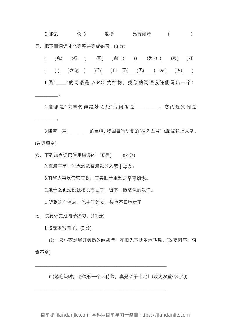 四下语文期中名校真题测试卷 简单街 12月前发布 关注 私信 020 四下语文期中名校真题测试卷此内容为付费资源,请付费后查看¥1.2黄金会员免费钻石会员免费立即购买您当前未登录!建议登陆后购买,可保存购买订单格式pdf页数9 页大小567.02 KB付费资源 ——预览已结束,还剩7页未读——开通会员后可免费下载高清完整文档 © 版权声明文章版权归作者所有,未经允许请勿转载。THE END小学语文喜欢就支持一下吧点赞0 分享收藏0