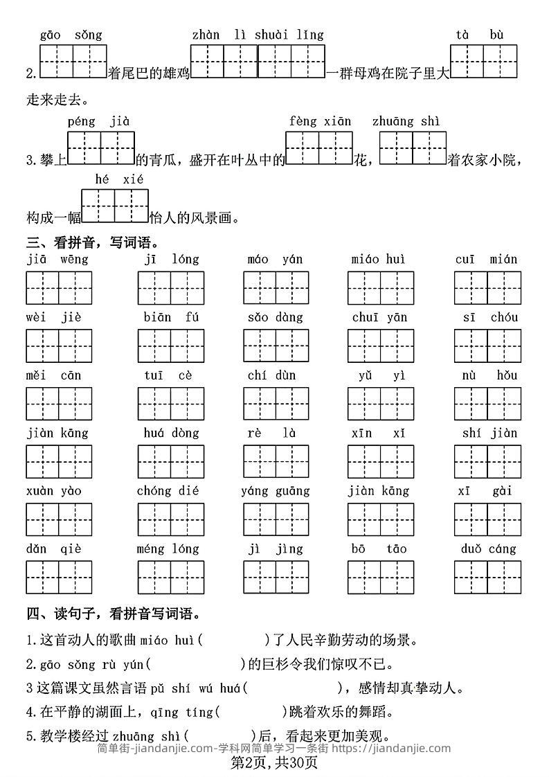 四下语文期中复习七大重点题型专项训练(含答案30页) 简单街 12月前发布 关注 私信 0180 四下语文期中复习七大重点题型专项训练(含答案30页)此内容为付费资源,请付费后查看¥2.7黄金会员免费钻石会员免费立即购买您当前未登录!建议登陆后购买,可保存购买订单格式pdf页数30 页大小15.12 MB付费资源 ——预览已结束,还剩28页未读——开通会员后可免费下载高清完整文档 © 版权声明文章版权归作者所有,未经允许请勿转载。THE END小学语文喜欢就支持一下吧点赞0 分享收藏0
