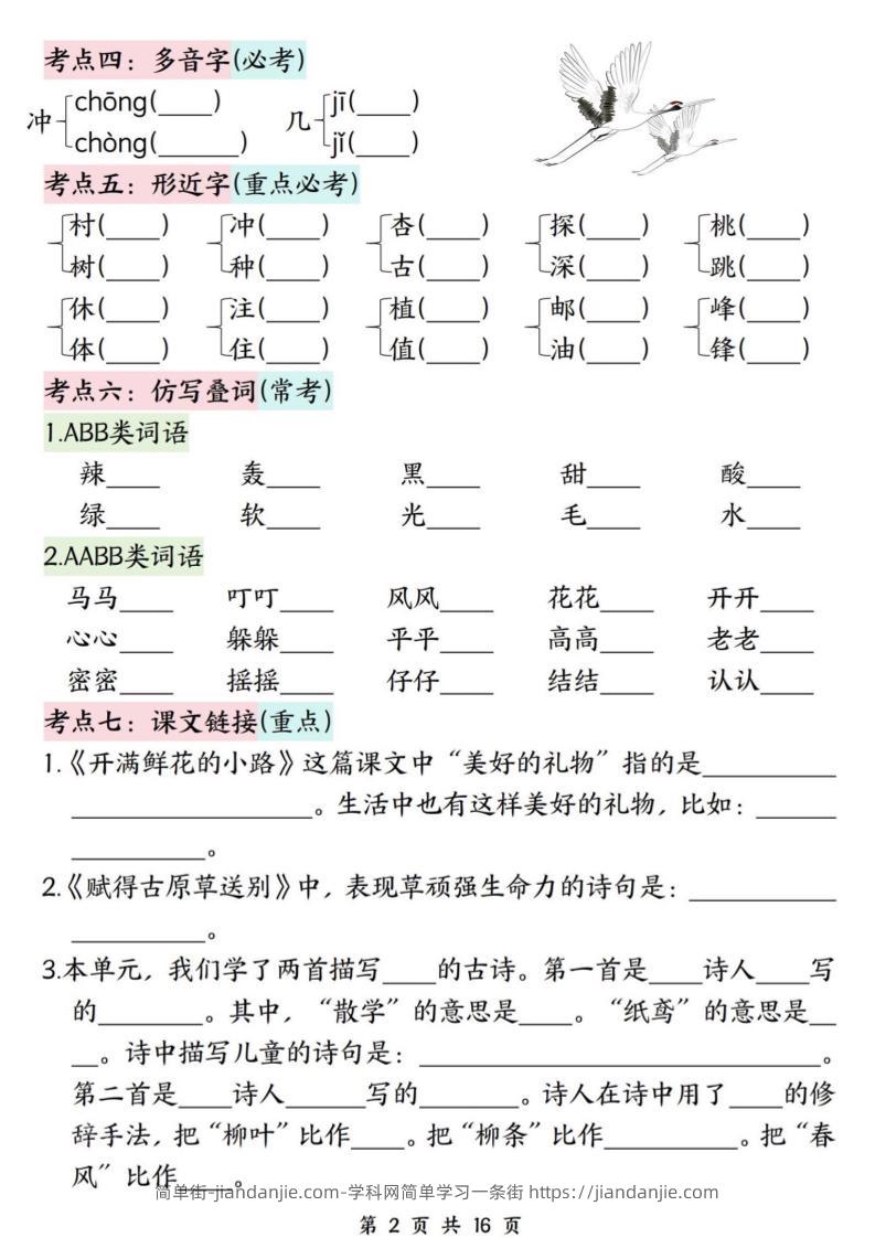 二下语文期中复习高频考点过关检测(1-4单元含答案16页) 简单街 9月前发布 关注 私信 010 二下语文期中复习高频考点过关检测(1-4单元含答案16页)此内容为付费资源,请付费后查看¥2.7黄金会员免费钻石会员免费立即购买您当前未登录!建议登陆后购买,可保存购买订单格式pdf页数16 页大小6.80 MB付费资源 ——预览已结束,还剩14页未读——开通会员后可免费下载高清完整文档 © 版权声明文章版权归作者所有,未经允许请勿转载。THE END小学语文喜欢就支持一下吧点赞0 分享收藏0