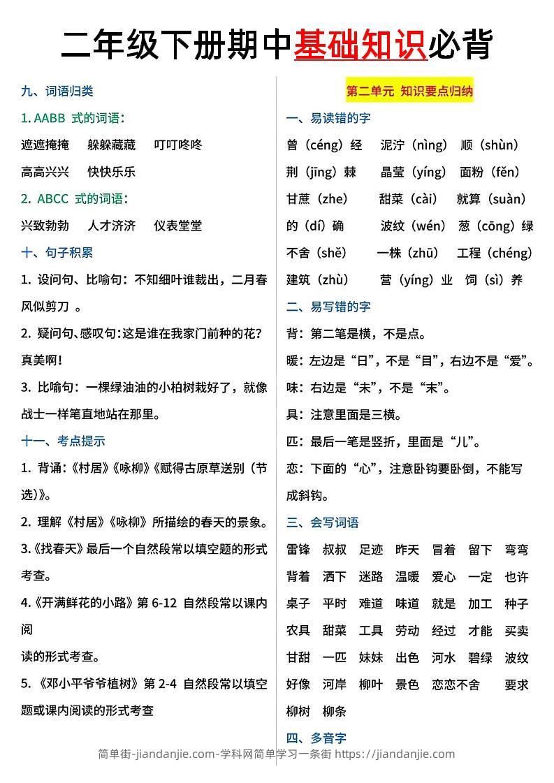 二年级语文下册期中基础知识必背5页 简单街 9月前发布 关注 私信 0390 二年级语文下册期中基础知识必背5页此内容为付费资源,请付费后查看¥2.7黄金会员免费钻石会员免费立即购买您当前未登录!建议登陆后购买,可保存购买订单格式pdf页数5 页大小1.45 MB付费资源 ——预览已结束,还剩3页未读——开通会员后可免费下载高清完整文档 © 版权声明文章版权归作者所有,未经允许请勿转载。THE END小学语文喜欢就支持一下吧点赞0 分享收藏0