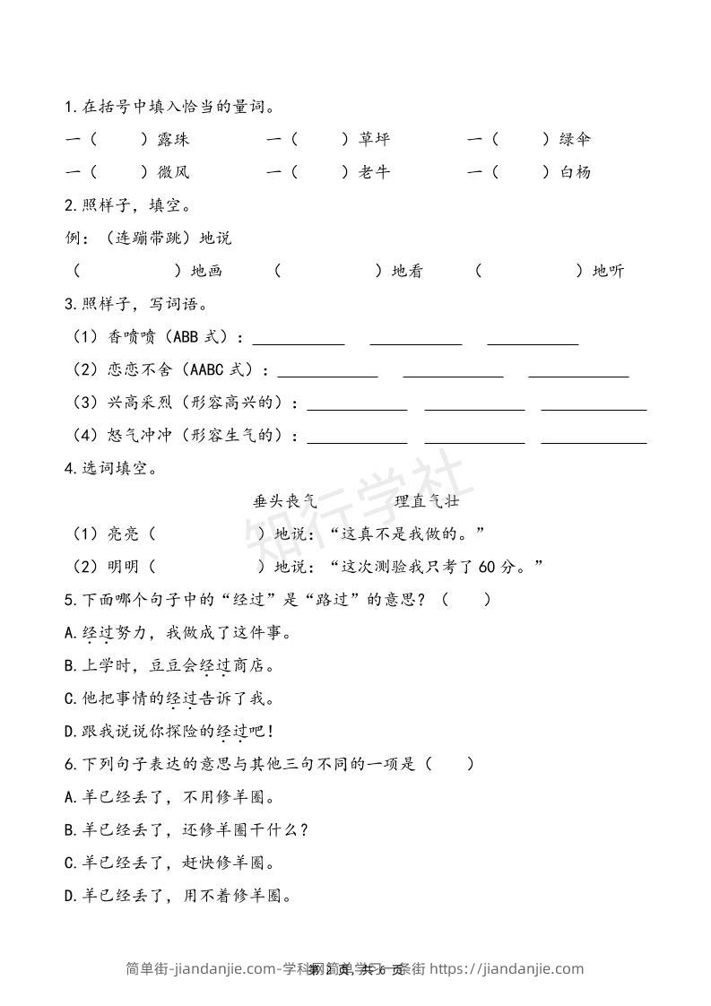 二下语文五一假期练习(含答案6页) 简单街 10月前发布 关注 私信 030 二下语文五一假期练习(含答案6页)此内容为付费资源,请付费后查看¥1.2黄金会员免费钻石会员免费立即购买您当前未登录!建议登陆后购买,可保存购买订单格式pdf页数6 页大小252.86 KB付费资源 ——预览已结束,还剩4页未读——开通会员后可免费下载高清完整文档 © 版权声明文章版权归作者所有,未经允许请勿转载。THE END小学语文喜欢就支持一下吧点赞0 分享收藏0