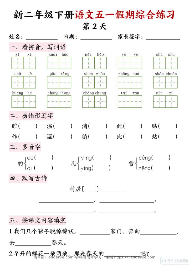 新二下语文五一假期综合练习 简单街 10月前发布 关注 私信 0160 新二下语文五一假期综合练习此内容为付费资源,请付费后查看¥1.2黄金会员免费钻石会员免费立即购买您当前未登录!建议登陆后购买,可保存购买订单格式pdf页数5 页大小1.92 MB付费资源 ——预览已结束,还剩3页未读——开通会员后可免费下载高清完整文档 © 版权声明文章版权归作者所有,未经允许请勿转载。THE END小学语文喜欢就支持一下吧点赞0 分享收藏0