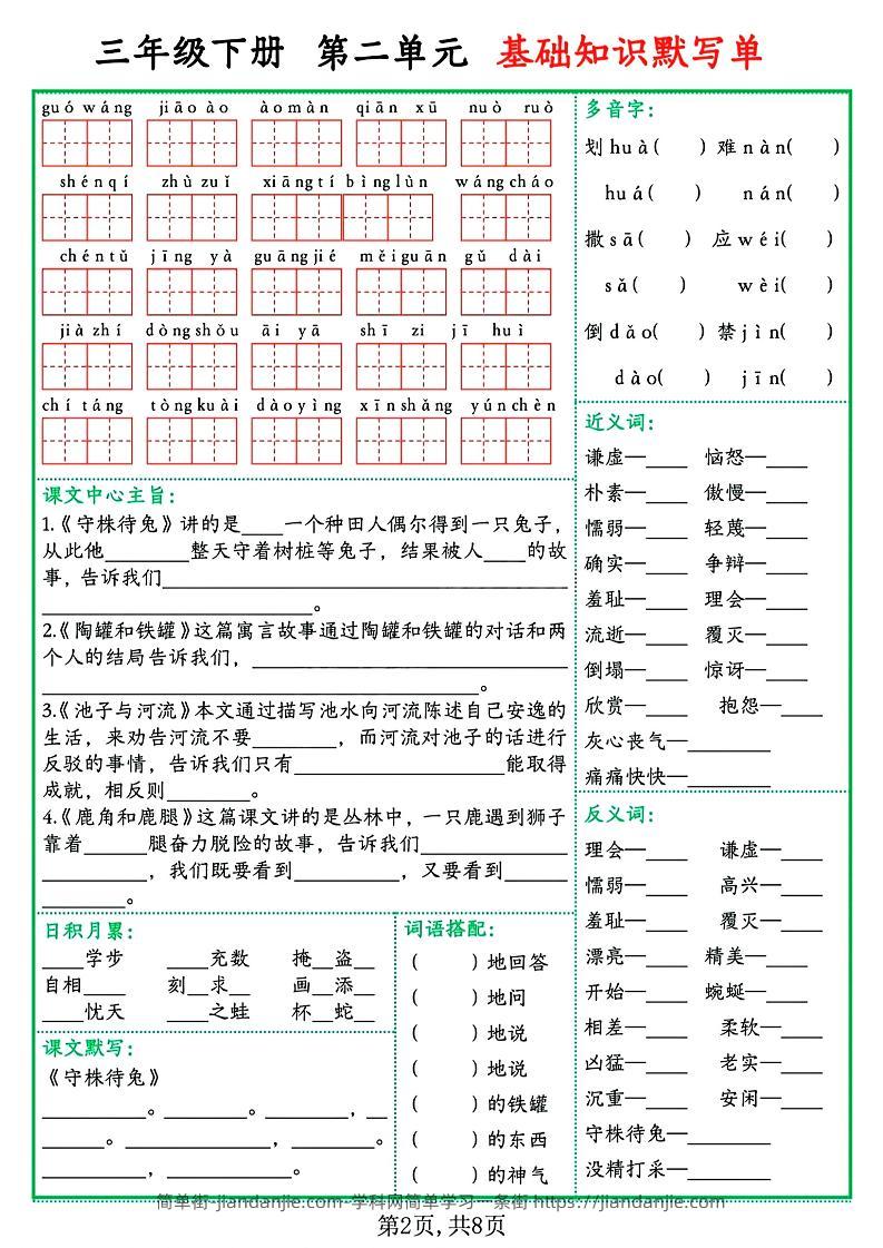 三下语文1-8单元基础知识默写单(含答案16页) 简单街 11月前发布 关注 私信 020 三下语文1-8单元基础知识默写单(含答案16页)此内容为付费资源,请付费后查看¥1.2黄金会员免费钻石会员免费立即购买您当前未登录!建议登陆后购买,可保存购买订单格式pdf页数16 页大小12.25 MB付费资源 ——预览已结束,还剩14页未读——开通会员后可免费下载高清完整文档 © 版权声明文章版权归作者所有,未经允许请勿转载。THE END小学语文喜欢就支持一下吧点赞0 分享收藏0