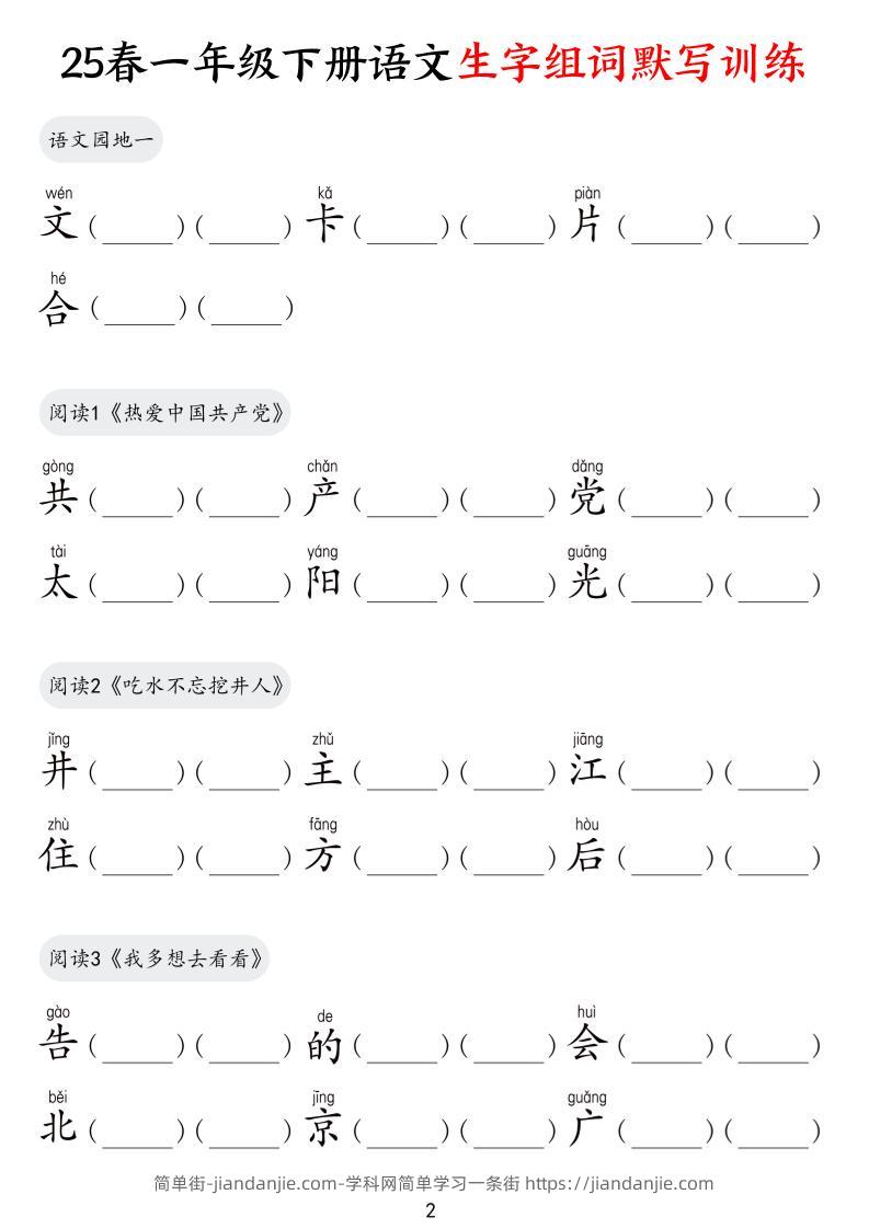 25春一下语文生字组词默写训练(9页) 简单街 11月前发布 关注 私信 000 25春一下语文生字组词默写训练(9页)此内容为付费资源,请付费后查看¥1.5黄金会员免费钻石会员免费立即购买您当前未登录!建议登陆后购买,可保存购买订单格式pdf页数9 页大小4.09 MB付费资源 ——预览已结束,还剩7页未读——开通会员后可免费下载高清完整文档 © 版权声明文章版权归作者所有,未经允许请勿转载。THE END小学语文喜欢就支持一下吧点赞0 分享收藏0