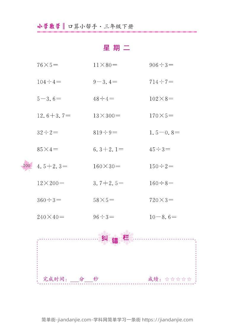 三下数学口算训练_第(15)周 简单街 8月前发布 关注 私信 030 三下数学口算训练_第(15)周此内容为付费资源,请付费后查看¥1.2黄金会员免费钻石会员免费立即购买您当前未登录!建议登陆后购买,可保存购买订单格式pdf页数7 页大小963.84 KB付费资源 ——预览已结束,还剩5页未读——开通会员后可免费下载高清完整文档 © 版权声明文章版权归作者所有,未经允许请勿转载。THE END小学数学喜欢就支持一下吧点赞0 分享收藏0