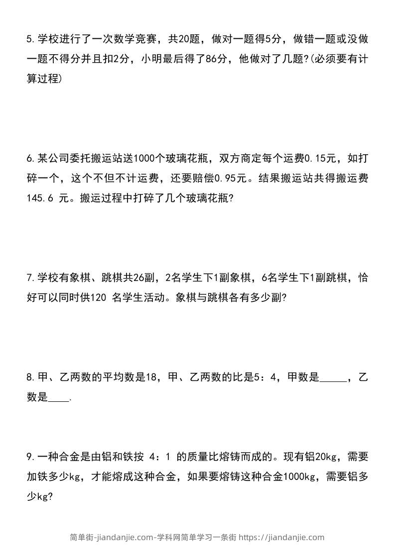 六年级下数学常考易错应用题(75道) 简单街 8月前发布 关注 私信 040 六年级下数学常考易错应用题(75道)此内容为付费资源,请付费后查看¥1.2黄金会员免费钻石会员免费立即购买您当前未登录!建议登陆后购买,可保存购买订单格式pdf页数35 页大小5.15 MB付费资源 ——预览已结束,还剩33页未读——开通会员后可免费下载高清完整文档 © 版权声明文章版权归作者所有,未经允许请勿转载。THE END小学数学喜欢就支持一下吧点赞0 分享收藏0