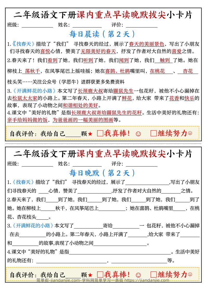 二下语文期末复习课内重点早读晚默拔尖小卡片15页 简单街 11月前发布 关注 私信 020 二下语文期末复习课内重点早读晚默拔尖小卡片15页此内容为付费资源,请付费后查看¥2.7黄金会员免费钻石会员免费立即购买您当前未登录!建议登陆后购买,可保存购买订单格式pdf页数14 页大小697.42 KB付费资源 ——预览已结束,还剩12页未读——开通会员后可免费下载高清完整文档 © 版权声明文章版权归作者所有,未经允许请勿转载。THE END小学语文喜欢就支持一下吧点赞0 分享收藏0
