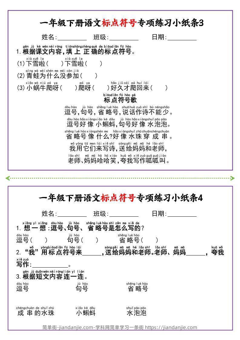 新一下语文标点符号专项练习小纸条14条(含答案8页) 简单街 11月前发布 关注 私信 010 新一下语文标点符号专项练习小纸条14条(含答案8页)此内容为付费资源,请付费后查看¥1.2黄金会员免费钻石会员免费立即购买您当前未登录!建议登陆后购买,可保存购买订单格式pdf页数8 页大小492.58 KB付费资源 ——预览已结束,还剩6页未读——开通会员后可免费下载高清完整文档 © 版权声明文章版权归作者所有,未经允许请勿转载。THE END小学语文喜欢就支持一下吧点赞0 分享收藏0
