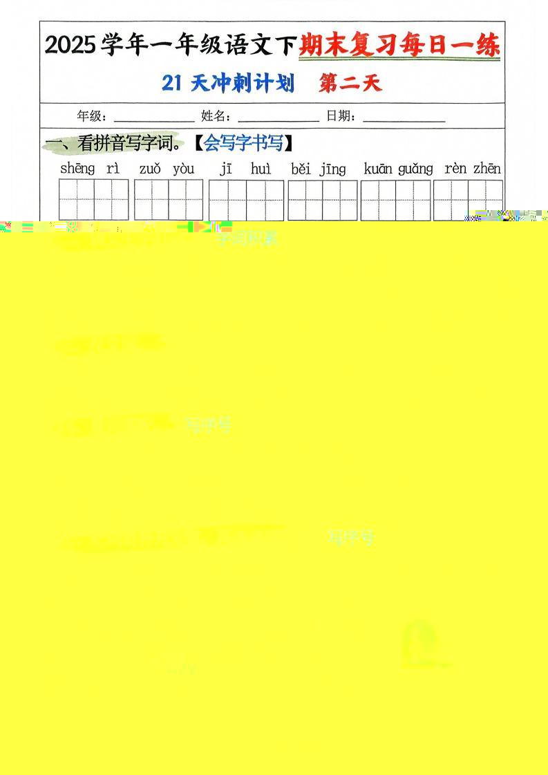 一年级下册语文期末复习21天冲刺计划 简单街 11月前发布 关注 私信 020 一年级下册语文期末复习21天冲刺计划此内容为付费资源,请付费后查看¥1.5黄金会员免费钻石会员免费立即购买您当前未登录!建议登陆后购买,可保存购买订单格式pdf页数21 页大小10.17 MB付费资源 ——预览已结束,还剩19页未读——开通会员后可免费下载高清完整文档 © 版权声明文章版权归作者所有,未经允许请勿转载。THE END小学语文喜欢就支持一下吧点赞0 分享收藏0