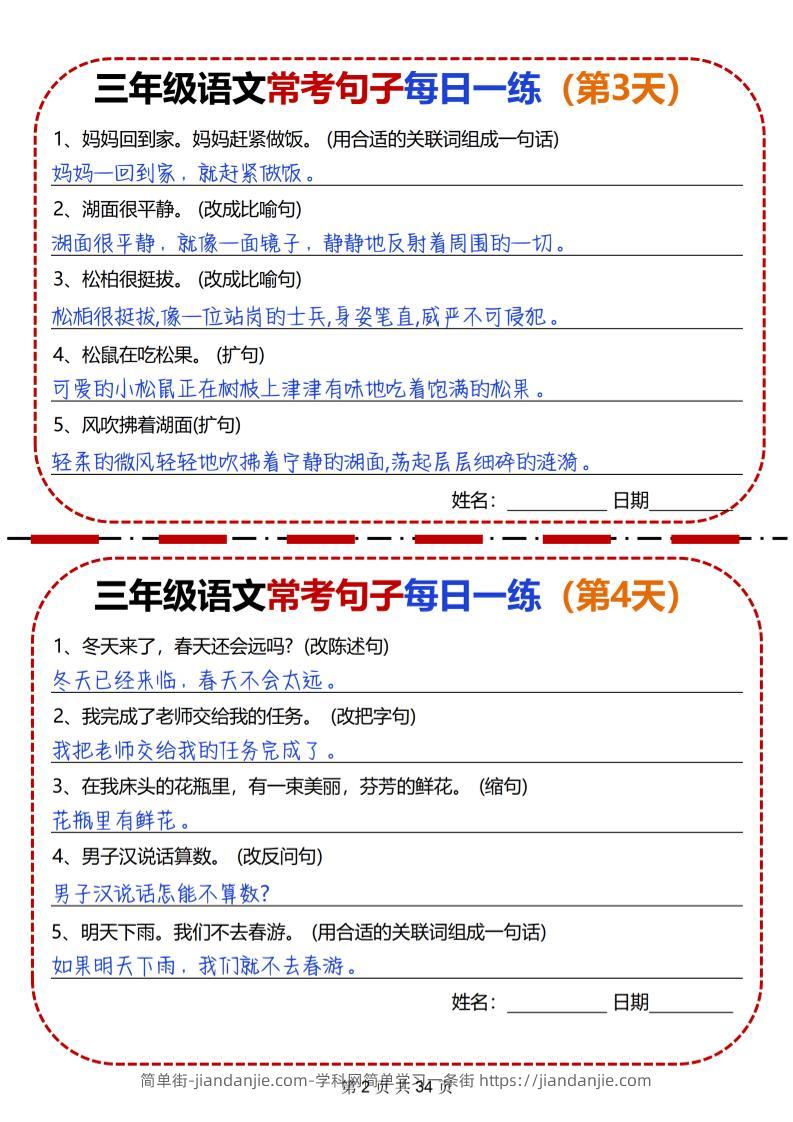 三下语文常考句子每日一练34天(含答案34页) 简单街 8月前发布 关注 私信 000 三下语文常考句子每日一练34天(含答案34页)此内容为付费资源,请付费后查看¥1.2黄金会员免费钻石会员免费立即购买您当前未登录!建议登陆后购买,可保存购买订单格式pdf页数34 页大小9.35 MB付费资源 ——预览已结束,还剩32页未读——开通会员后可免费下载高清完整文档 © 版权声明文章版权归作者所有,未经允许请勿转载。THE END小学语文喜欢就支持一下吧点赞0 分享收藏0
