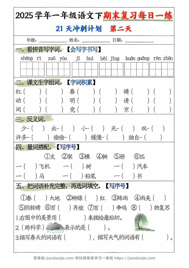 25学年一下语文期末复习每日一练21天冲刺计划(21页) 简单街 8月前发布 关注 私信 0100 25学年一下语文期末复习每日一练21天冲刺计划(21页)此内容为付费资源,请付费后查看¥0.9黄金会员免费钻石会员免费立即购买您当前未登录!建议登陆后购买,可保存购买订单格式pdf页数21 页大小6.66 MB付费资源 ——预览已结束,还剩19页未读——开通会员后可免费下载高清完整文档 © 版权声明文章版权归作者所有,未经允许请勿转载。THE END小学语文喜欢就支持一下吧点赞0 分享收藏0