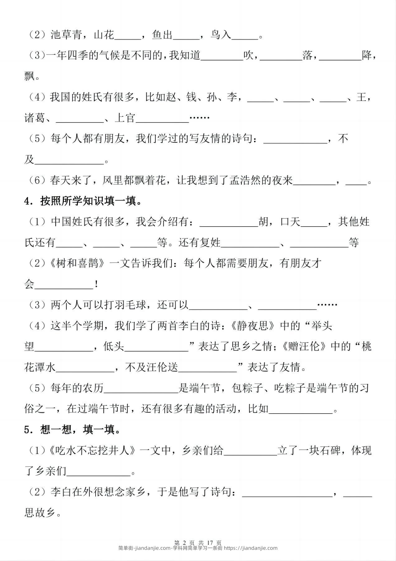 一年级下册语文1-8单元期末复习小测(按课文内容填空) 简单街 11月前发布 关注 私信 000 一年级下册语文1-8单元期末复习小测(按课文内容填空)此内容为付费资源,请付费后查看¥0.9黄金会员免费钻石会员免费立即购买您当前未登录!建议登陆后购买,可保存购买订单格式pdf页数16 页大小6.34 MB付费资源 ——预览已结束,还剩14页未读——开通会员后可免费下载高清完整文档 © 版权声明文章版权归作者所有,未经允许请勿转载。THE END小学语文喜欢就支持一下吧点赞0 分享收藏0