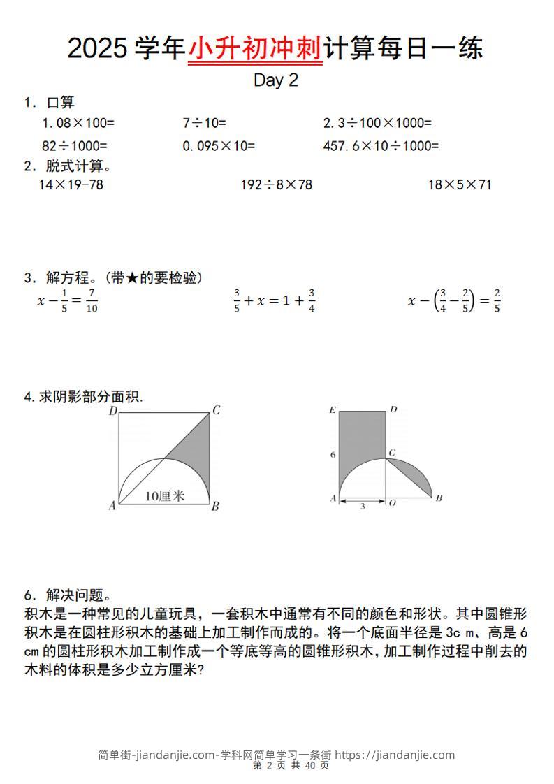 《小升初数学计算每日一练》 简单街 6月前发布 关注 私信 020 《小升初数学计算每日一练》此内容为付费资源,请付费后查看¥2.7黄金会员免费钻石会员免费立即购买您当前未登录!建议登陆后购买,可保存购买订单格式pdf页数40 页大小1.89 MB付费资源 ——预览已结束,还剩38页未读——开通会员后可免费下载高清完整文档 © 版权声明文章版权归作者所有,未经允许请勿转载。THE END小升初喜欢就支持一下吧点赞0 分享收藏0