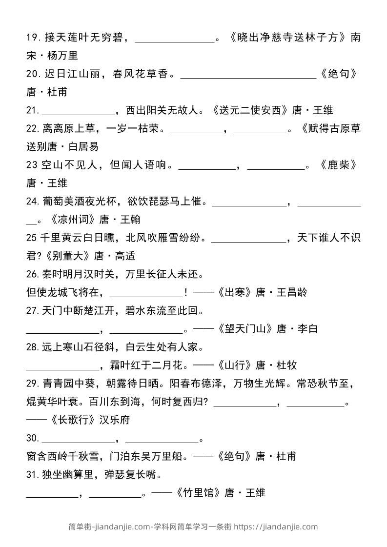小升初六下语文必背古诗词专项填空(70首) 简单街 8月前发布 关注 私信 000 小升初六下语文必背古诗词专项填空(70首)此内容为付费资源,请付费后查看¥1.2黄金会员免费钻石会员免费立即购买您当前未登录!建议登陆后购买,可保存购买订单格式pdf页数10 页大小375.14 KB付费资源 ——预览已结束,还剩8页未读——开通会员后可免费下载高清完整文档 © 版权声明文章版权归作者所有,未经允许请勿转载。THE END小升初喜欢就支持一下吧点赞0 分享收藏0