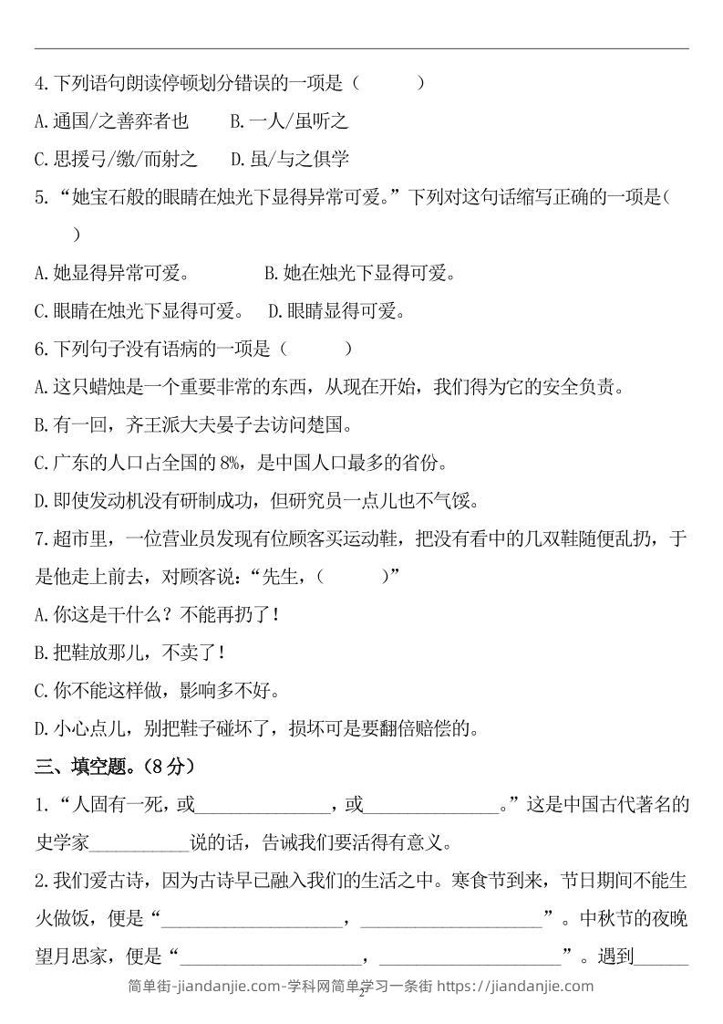 25春小升初语文期末模拟测试卷(三)9页 简单街 6月前发布 关注 私信 020 25春小升初语文期末模拟测试卷(三)9页此内容为付费资源,请付费后查看¥0.9黄金会员免费钻石会员免费立即购买您当前未登录!建议登陆后购买,可保存购买订单格式pdf页数9 页大小454.28 KB付费资源 ——预览已结束,还剩7页未读——开通会员后可免费下载高清完整文档 © 版权声明文章版权归作者所有,未经允许请勿转载。THE END小升初喜欢就支持一下吧点赞0 分享收藏0