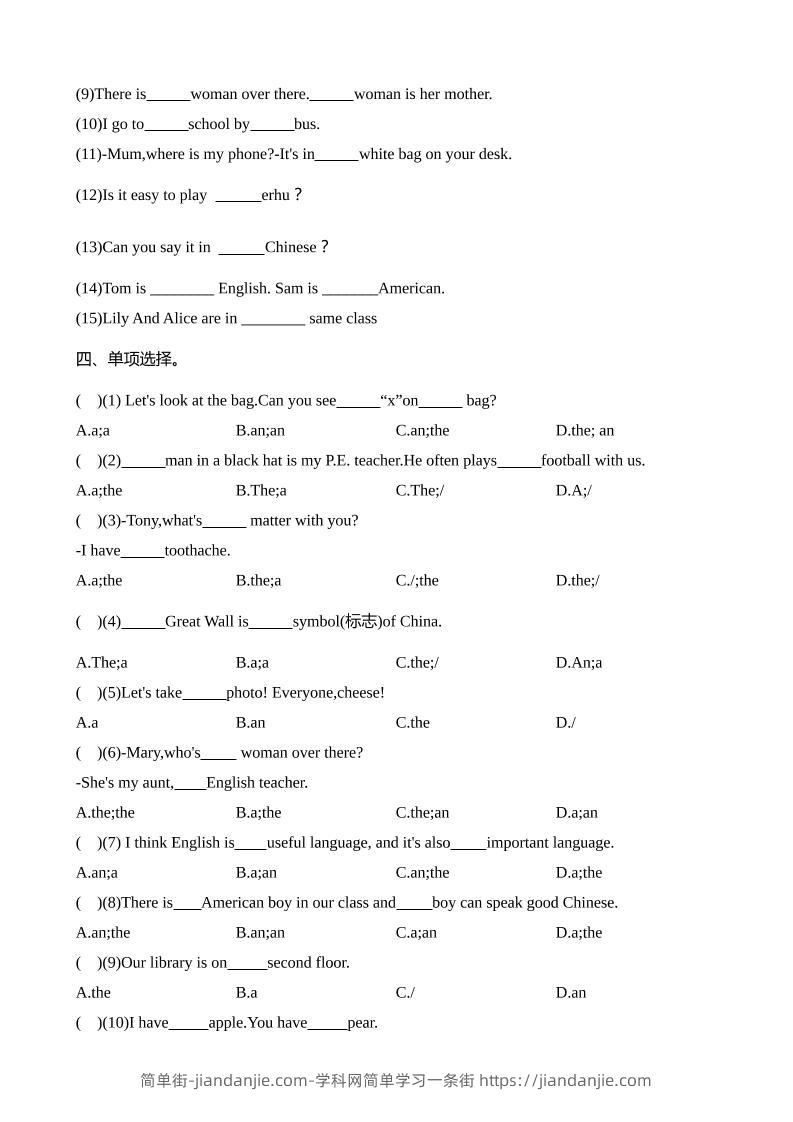 语法易错05冠词【2025小升初英语语法易错专练】 简单街 6月前发布 关注 私信 000 语法易错05冠词【2025小升初英语语法易错专练】此内容为付费资源,请付费后查看¥2.7黄金会员免费钻石会员免费立即购买您当前未登录!建议登陆后购买,可保存购买订单格式docx页数5 页大小20.41 KB付费资源 ——预览已结束,还剩3页未读——开通会员后可免费下载高清完整文档 © 版权声明文章版权归作者所有,未经允许请勿转载。THE END小升初喜欢就支持一下吧点赞0 分享收藏0