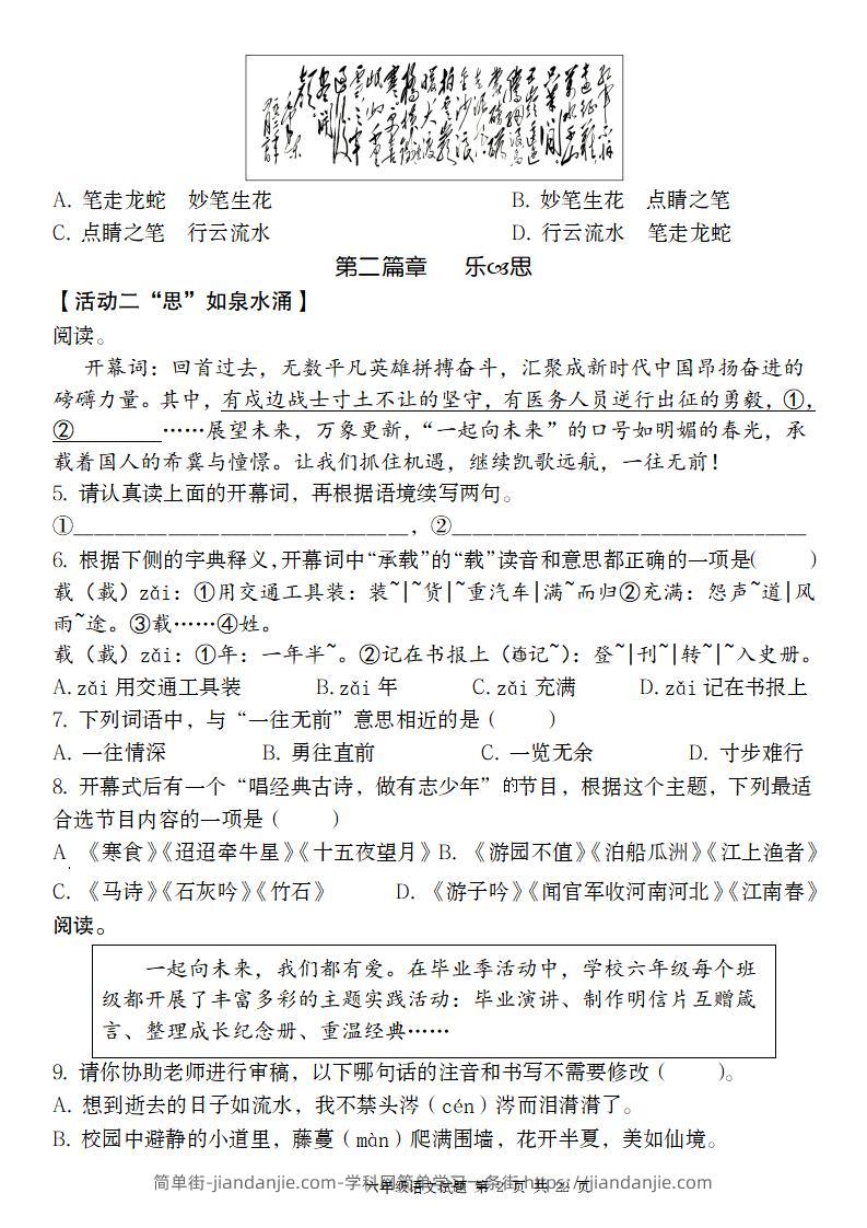 小升初语文期末终结性质量调研检测卷 简单街 6月前发布 关注 私信 030 小升初语文期末终结性质量调研检测卷此内容为付费资源,请付费后查看¥1.2黄金会员免费钻石会员免费立即购买您当前未登录!建议登陆后购买,可保存购买订单格式pdf页数22 页大小2.22 MB付费资源 ——预览已结束,还剩20页未读——开通会员后可免费下载高清完整文档 © 版权声明文章版权归作者所有,未经允许请勿转载。THE END小升初喜欢就支持一下吧点赞0 分享收藏0