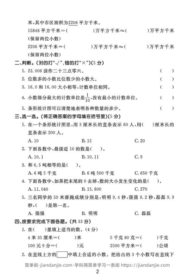四年级下数学第六、七单元测试卷《冀教版》 简单街 11月前发布 关注 私信 020 四年级下数学第六、七单元测试卷《冀教版》此内容为付费资源,请付费后查看¥0.9黄金会员免费钻石会员免费立即购买您当前未登录!建议登陆后购买,可保存购买订单格式pdf页数8 页大小8.04 MB付费资源 ——预览已结束,还剩6页未读——开通会员后可免费下载高清完整文档 © 版权声明文章版权归作者所有,未经允许请勿转载。THE END小学数学喜欢就支持一下吧点赞0 分享收藏0