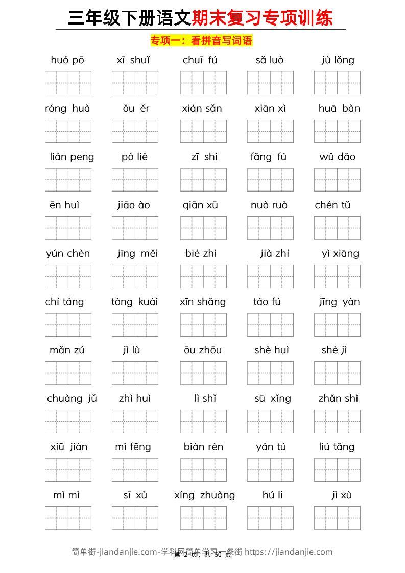 三下语文期末复习十大专项练习(含答案77页) 简单街 11月前发布 关注 私信 020 三下语文期末复习十大专项练习(含答案77页)此内容为付费资源,请付费后查看¥2.7黄金会员免费钻石会员免费立即购买您当前未登录!建议登陆后购买,可保存购买订单格式pdf页数77 页大小2.60 MB付费资源 ——预览已结束,还剩75页未读——开通会员后可免费下载高清完整文档 © 版权声明文章版权归作者所有,未经允许请勿转载。THE END小学语文喜欢就支持一下吧点赞0 分享收藏0