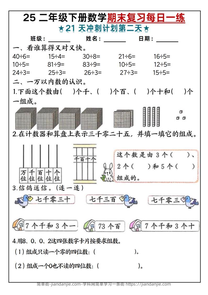 25二年级下册数学期末复习每日一练 简单街 11月前发布 关注 私信 080 25二年级下册数学期末复习每日一练此内容为付费资源,请付费后查看¥1.2黄金会员免费钻石会员免费立即购买您当前未登录!建议登陆后购买,可保存购买订单格式pdf页数21 页大小19.71 MB付费资源 ——预览已结束,还剩19页未读——开通会员后可免费下载高清完整文档 © 版权声明文章版权归作者所有,未经允许请勿转载。THE END小学数学喜欢就支持一下吧点赞0 分享收藏0