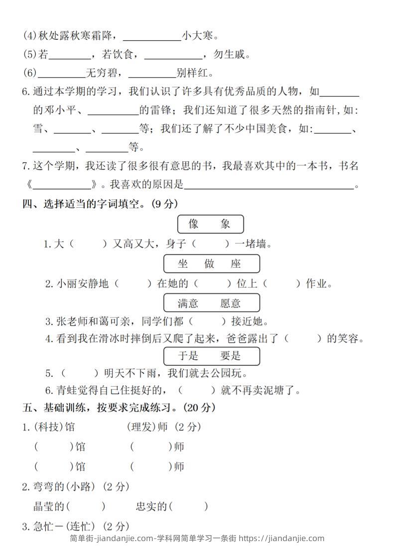 2025学年二年级下册语文期末拔尖测试卷(含答案5页) 简单街 11月前发布 关注 私信 010 2025学年二年级下册语文期末拔尖测试卷(含答案5页)此内容为付费资源,请付费后查看¥1.5黄金会员免费钻石会员免费立即购买您当前未登录!建议登陆后购买,可保存购买订单格式pdf页数5 页大小3.01 MB付费资源 ——预览已结束,还剩3页未读——开通会员后可免费下载高清完整文档 © 版权声明文章版权归作者所有,未经允许请勿转载。THE END小学语文喜欢就支持一下吧点赞0 分享收藏0