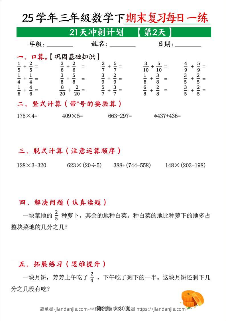 三下数学【期末复习21天冲刺计划每日一练】 简单街 7月前发布 关注 私信 000 三下数学【期末复习21天冲刺计划每日一练】此内容为付费资源,请付费后查看¥0.9黄金会员免费钻石会员免费立即购买您当前未登录!建议登陆后购买,可保存购买订单格式pdf页数21 页大小19.76 MB付费资源 ——预览已结束,还剩19页未读——开通会员后可免费下载高清完整文档 © 版权声明文章版权归作者所有,未经允许请勿转载。THE END小学数学喜欢就支持一下吧点赞0 分享收藏0